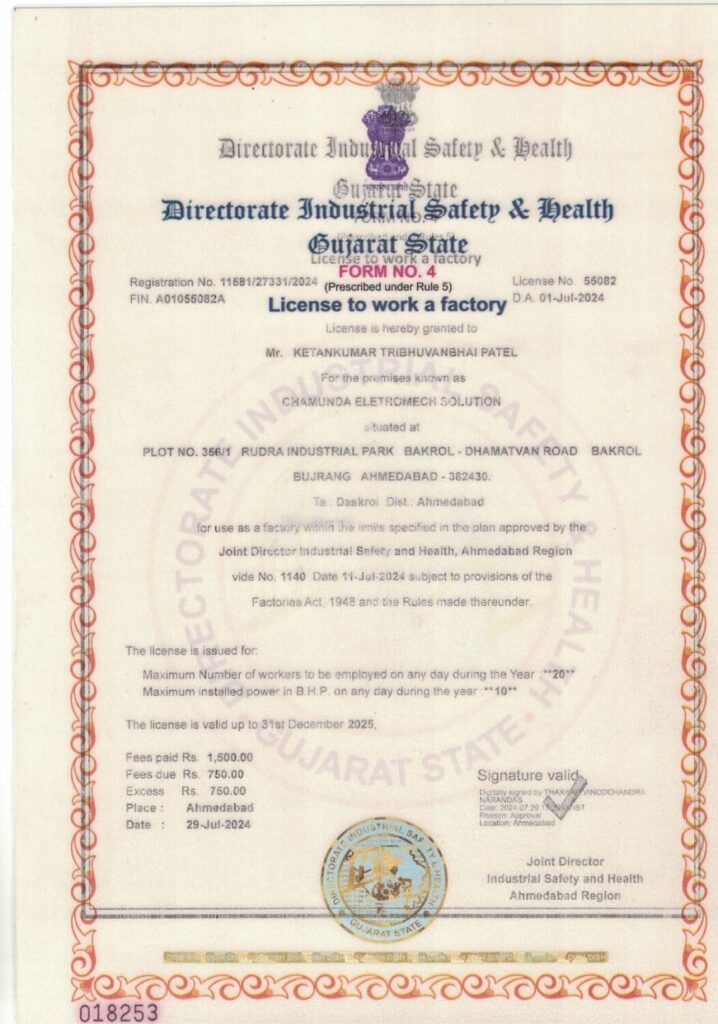 We continuously and sincerely put efforts to enhance our technical Knowledge through excellent industrial interaction, which has developed a unique dimension to our product and final system execution. We believe that our product quality and efficient After Sales Service system is enhanced by developing deep and transparent relationship with our esteemed clients. Our company “Chamunda Eletromech Solution” has been widely acclaimed as one of the most reliable manufacturing, supplying, as well as distributing firm in the whole market arena.